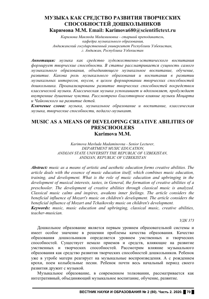 Музыка развивает творческое мышление и воображение у детей. Игра на музыкальных инструментах, танцы под музыку, создание собственных музыкальных произведений способствуют развитию креативности и воображения у детей. Музыка позволяет детям выражать себя, экспериментировать и находить новые способы самовыражения.